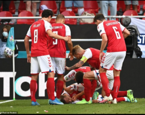 Danish attacking midfielder, Christian Eriksen has collapsed on the pitch.