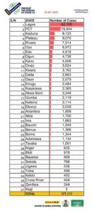 Gatekeepers News reports that Nigeria. recorded 216 new COVID-19 cases on Monday, July 25, 2021, bringing the number of confirmed infections in the country to 171,111.