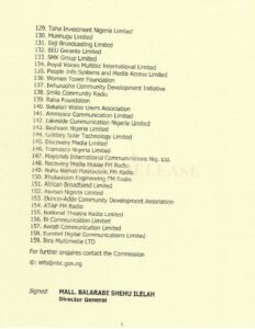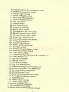 Gatekeepers News reports that the National Broadcasting Commission, NBC, has released the list of the 159 licenses granted to companies, communities, and institutions of higher learning.