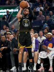 Curry is widely considered to be the greatest shooter in NBA history. He is credited with revolutionizing the game of basketball by inspiring teams, from high school to the NBA, to regularly use the three-point shot. Analysts have referred to him as “the Michael Jordan of the three-point era”, saying that he did for the three-point shot what Jordan did for the slam dunk. The Guardian’s Robert O’Connell cites Curry’s February 27, 2013, game against the New York Knicks, in which he made 11 of 13 shots from behind the arc en route for a 54-point performance, as the start of the three-point era. The era has been referred to as “The Steph Effect” or “the NBA’s Three-Point Revolution”.
