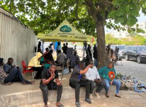 The journalists, however, assembled their cameras and other gadgets outside the estate gate.