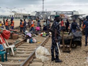 Gatekeepers News reports that Shola Jejeloye, Chairperson of the Lagos taskforce, while speaking with journalists on Friday, said the exercise will discourage people from trading along the railway corridor, adding that such activities hinder the smooth movement of trains.