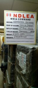 The anti-narcotics agency said, “Meanwhile, attempts to smuggle 98 cartons containing Five Million One Hundred and Twenty Two Thousand Nine Hundred (5, 122, 900) pills of Tramadol 225mg with an estimated street value of about Three Billion Seven Hundred Million Naira (N3.7billion) only into Nigeria through the Murtala Muhammed International Airport, MMIA, Ikeja, have been thwarted through the robust synergy between men of the Nigeria Customs Service and NDLEA officers at the airport as well as those at the DHL cargo warehouse. Preliminary findings revealed that the consignments were imported from India and Pakistan, while some of the seized consignments had Freetown, Sierra Leone as final destination.”