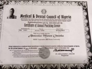 Omenka reportedly presented fake credentials, which included a photocopy of the Medical and Dental Council of Nigeria registration certificate issued in 2015.