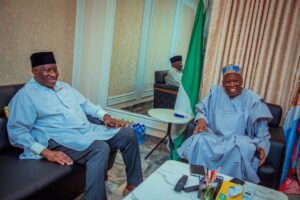 “The National Chairman, Dr Abdullahi Umar Ganduje, received in audience former President Goodluck Jonathan @GEJonathan at his residence in Abuja,” the party posted.