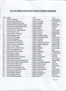 According to the statement; their suspension is as a result of their anti-palace and rebellious activities against the Oba of Benin and the traditional institution.
