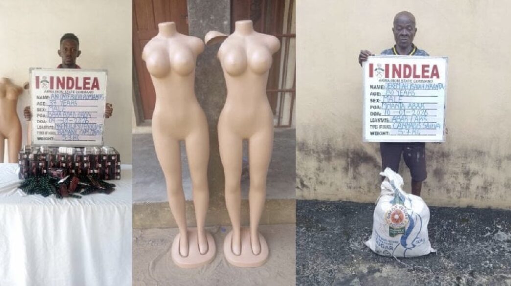 In a separate operation, NDLEA operatives intercepted tramadol pills weighing about 5.3 kilogrammes concealed inside mannequins along the Oron–Ibaka road in Oron local government area of Akwa Ibom State. A 37-year-old businessman, Ani Onyebuchi Romans, was arrested while allegedly transporting the items to Cameroon.