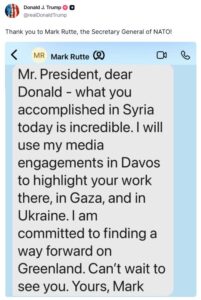 US President Donald Trump on Wednesday posted private messages exchanged with French President Emmanuel Macron and NATO Secretary-General Mark Rutte, revealing growing tensions over Greenland.
